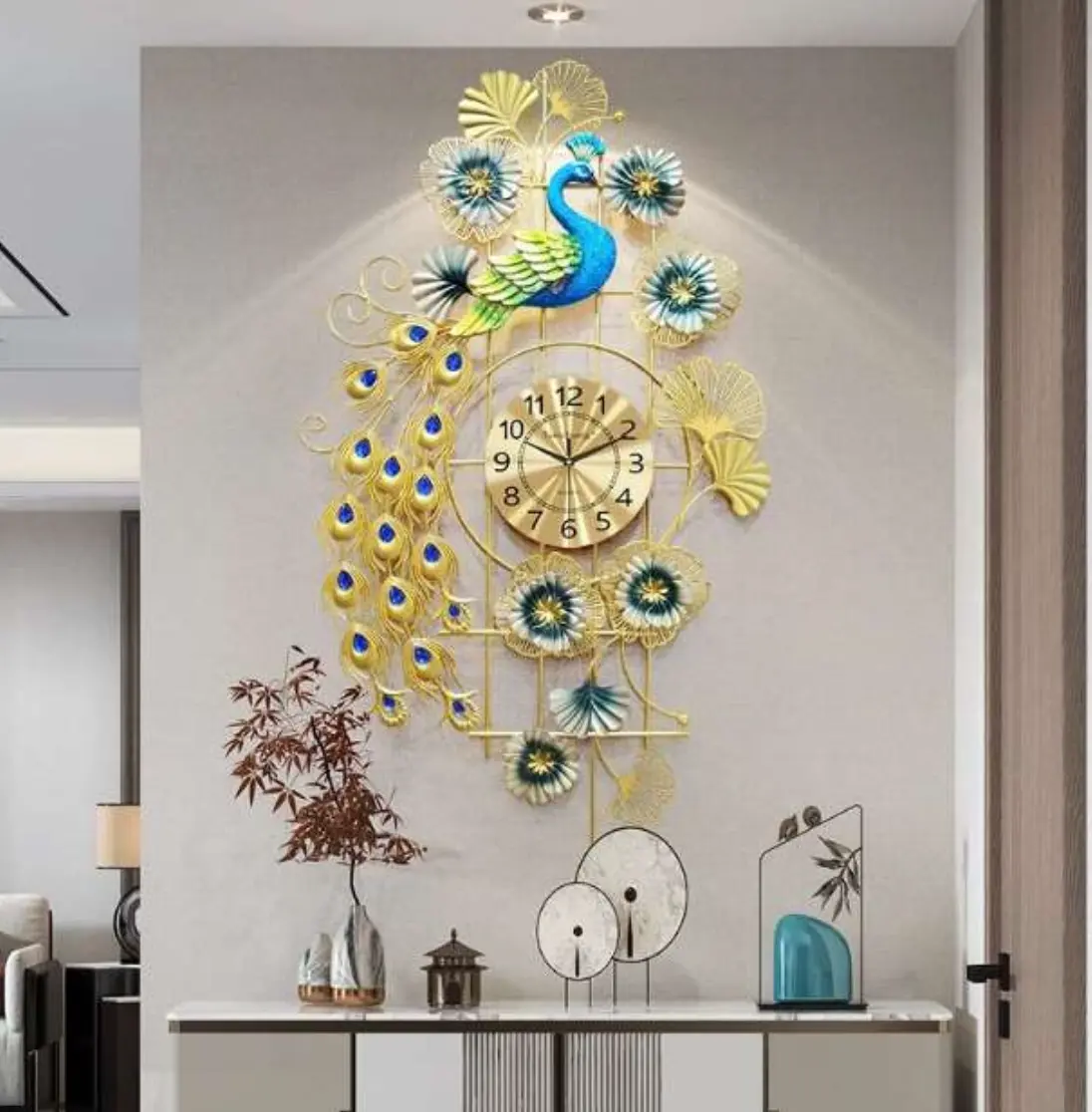 Metal Wall Decor Peacock Clock